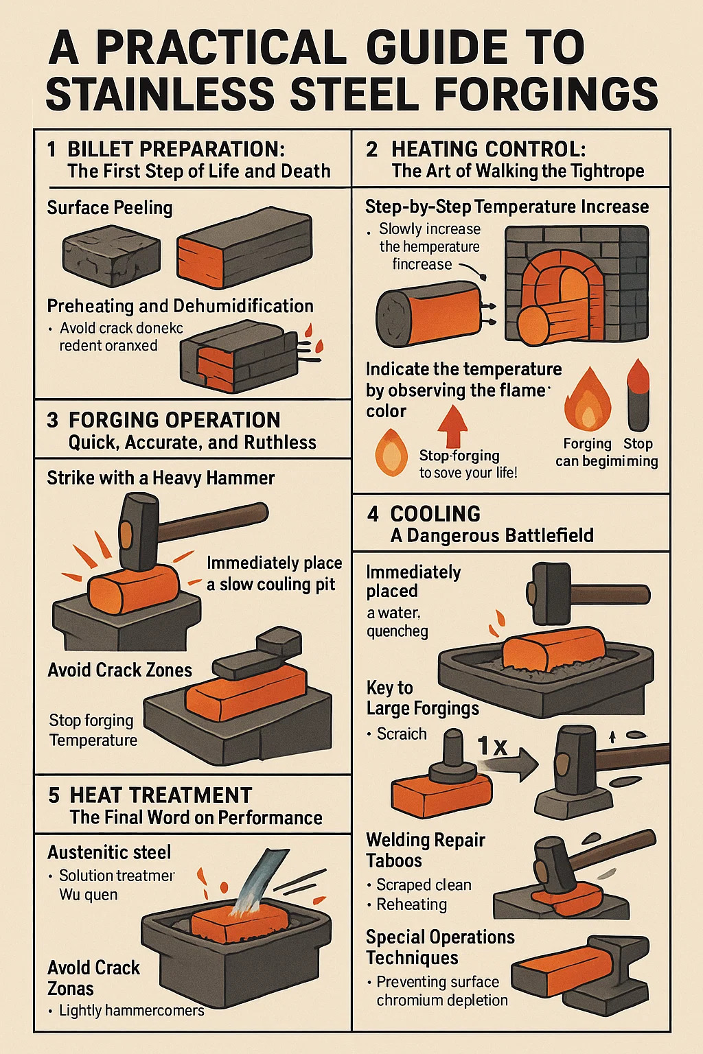 Stop med at smede temperatur: Austenitisk stål ≥850 ° C, martensitisk stål ≥950 ° C (smedning under denne temperatur vil uundgåeligt revne).