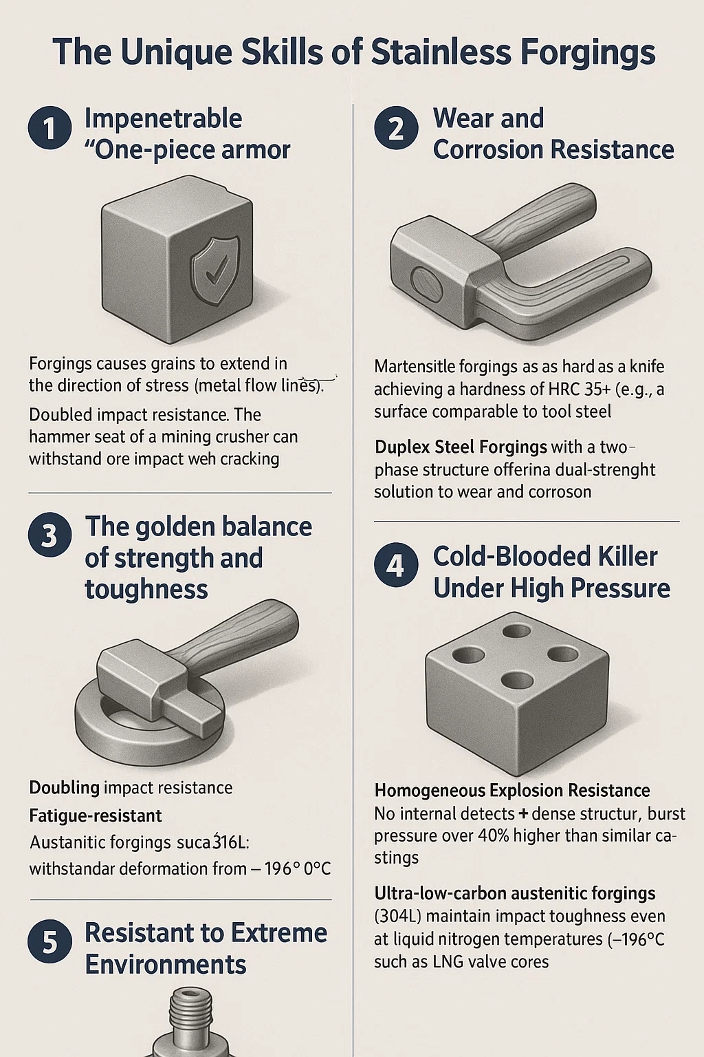 Både stivhed og fleksibilitet: austenitiske sminger (såsom 316L) er utroligt hårde, modstå deformation fra -196 ° C til 800 ° C.
