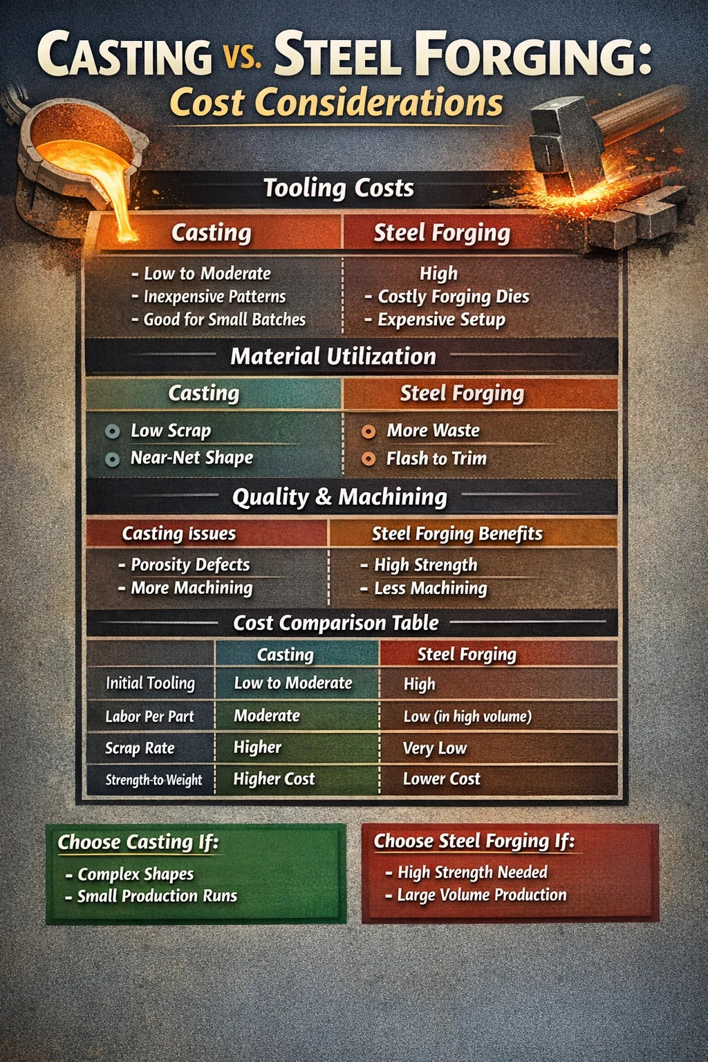 Budgettering af et nyt projekt begynder med værktøj. Støbning og smedning har vidt forskellige indgangsomkostninger, der dikterer, hvilken metode en indkøbschef kan vælge.
